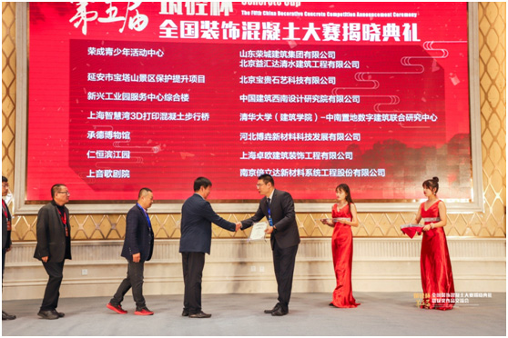 2020年10月17日,由中國混凝土與水泥制品協會主辦,國家建筑材料展貿中心聯合主辦,CCPA裝飾混凝土分會承辦的“筑砼杯”第五屆全國裝飾混凝土大賽揭曉典禮暨獲獎作品交流會在榮成市華星賓館隆重舉行。我公司施工的榮成市青少年活動中心(少年宮)榮獲建筑類金獎和最具人氣獎。