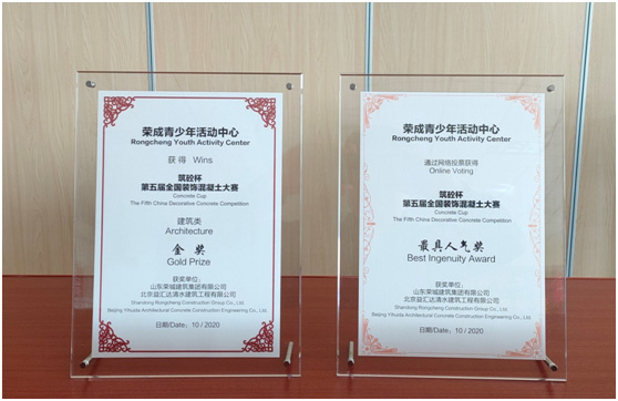 榮成市青少年活動中心(少年宮)工程榮獲“筑砼杯”第五屆全國裝飾混凝土大賽建筑類金獎